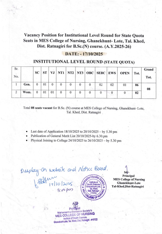 NURSING ADMISSION OPEN For A.Y. 2025-2026 Applications are invited from eligible candidates for admissions to First Year of 1st Year MSc (Nursing), B. Sc.(Nursing) under Institutional Including NRI Quota and for admission to Post basic B.Sc. (Nursing) & ANM as per the given details below for the Academic Year 2025-26. B. Sc. (Nursing) Full Time […]