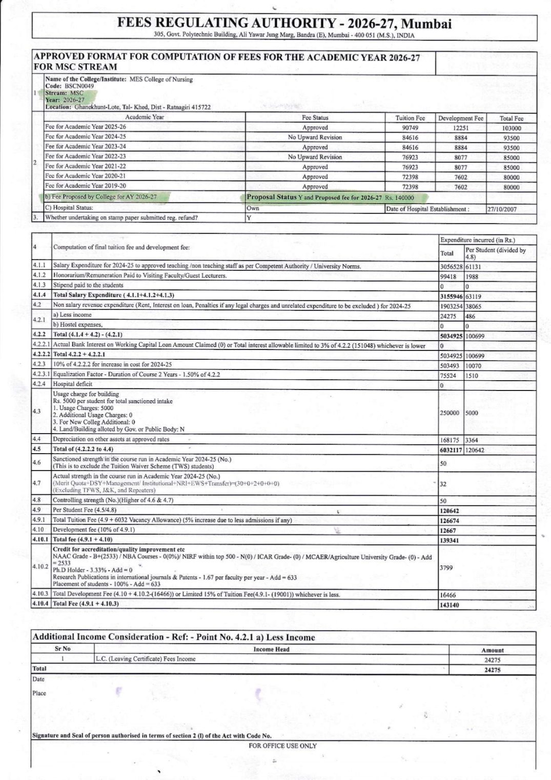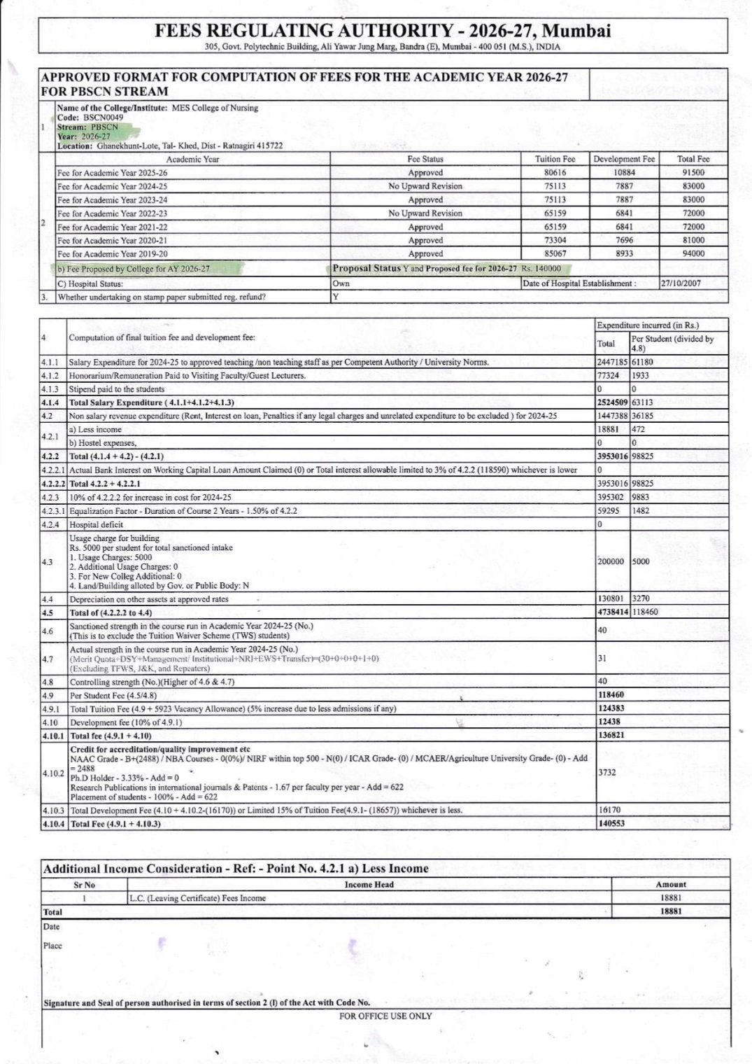 1. List of applicant