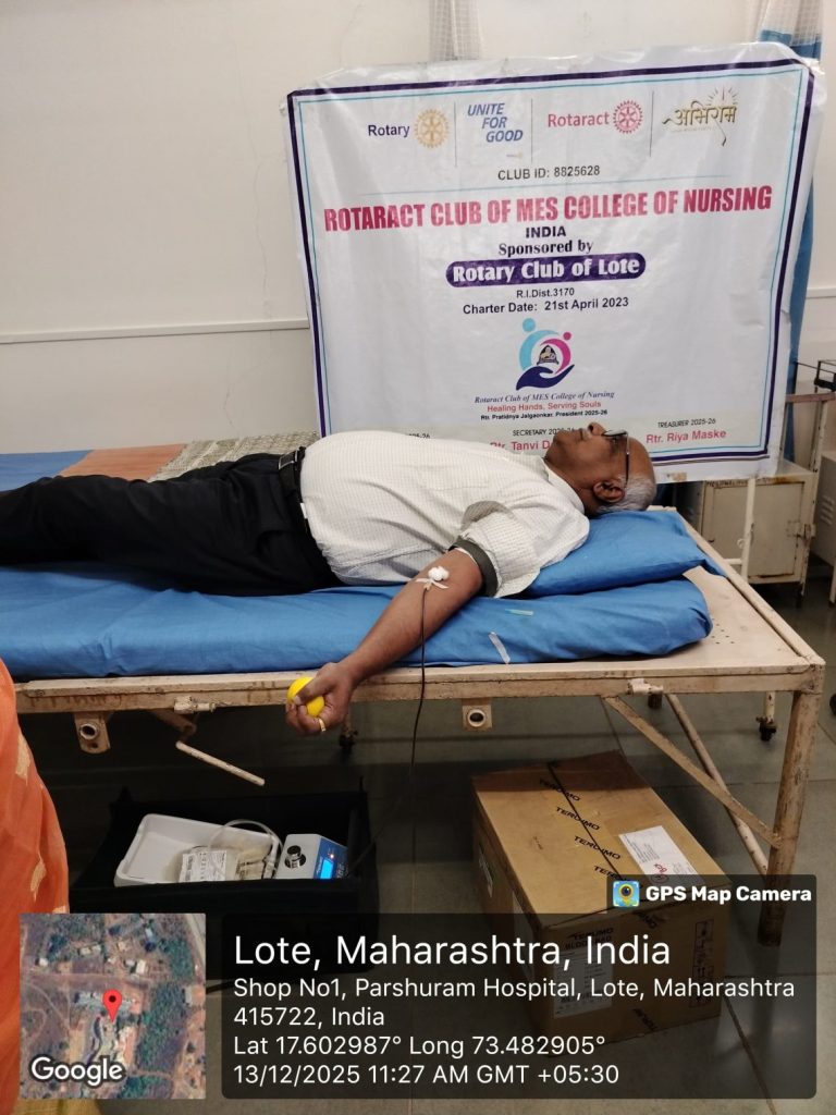 ┬а ┬а ┬а ┬а ┬а ┬а ┬а ┬а ┬а ┬а ┬а ┬а ┬а ┬а ┬а ┬а ┬а ┬а A free blood donation camp was successfully conducted at Maharashtra Education SocietyтАЩs MES College of Nursing through the joint initiative of the Rotary Club of MES College of Nursing and HDFC Blood Bank, Chiplun branch. The camp witnessed an enthusiastic response from students, staff members, and volunteers, reflecting a strong sense of social responsibility and commitment toward community health.